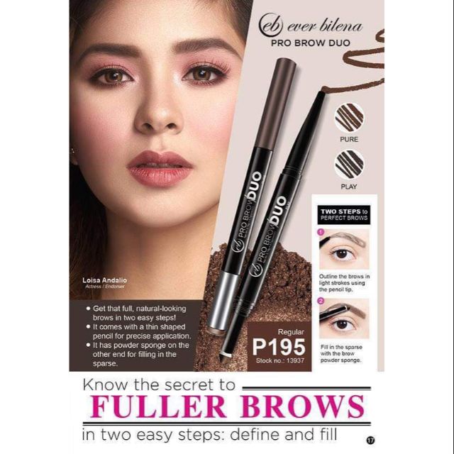 181 80 the power of proc format as of june 15 2020 more info product prices and availability are accurate as of the date time indicated and are subject to change. It has penetrated an industry were make up was dominated by international companies by offering products best suited for the filipino consumers with. Ever bilena s pro brow duo helps you achieve perfect looking arches thanks to its dual ended tips use the regular pencil tip to lightly outline and fill in sparse areas of the brows then finish your look of with the opposite end which features a built in brow powder and sponge tip applicator the result.